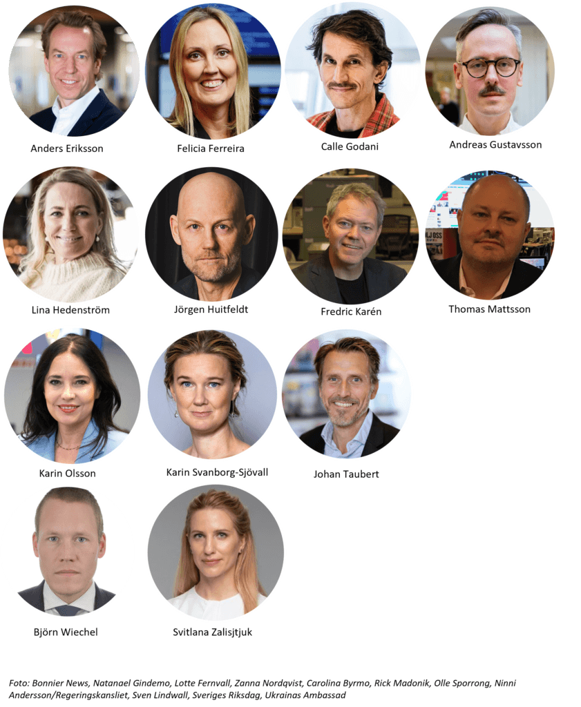 Vi följer upp det med reflektioner och synpunkter från TU:s presidium. På scenen finns Anders Eriksson, vd och koncernchef Bonnier News, Lina Hedenström, vd NTM och Fredric Karén, koncerndirektör Schibsted Media Sverige.